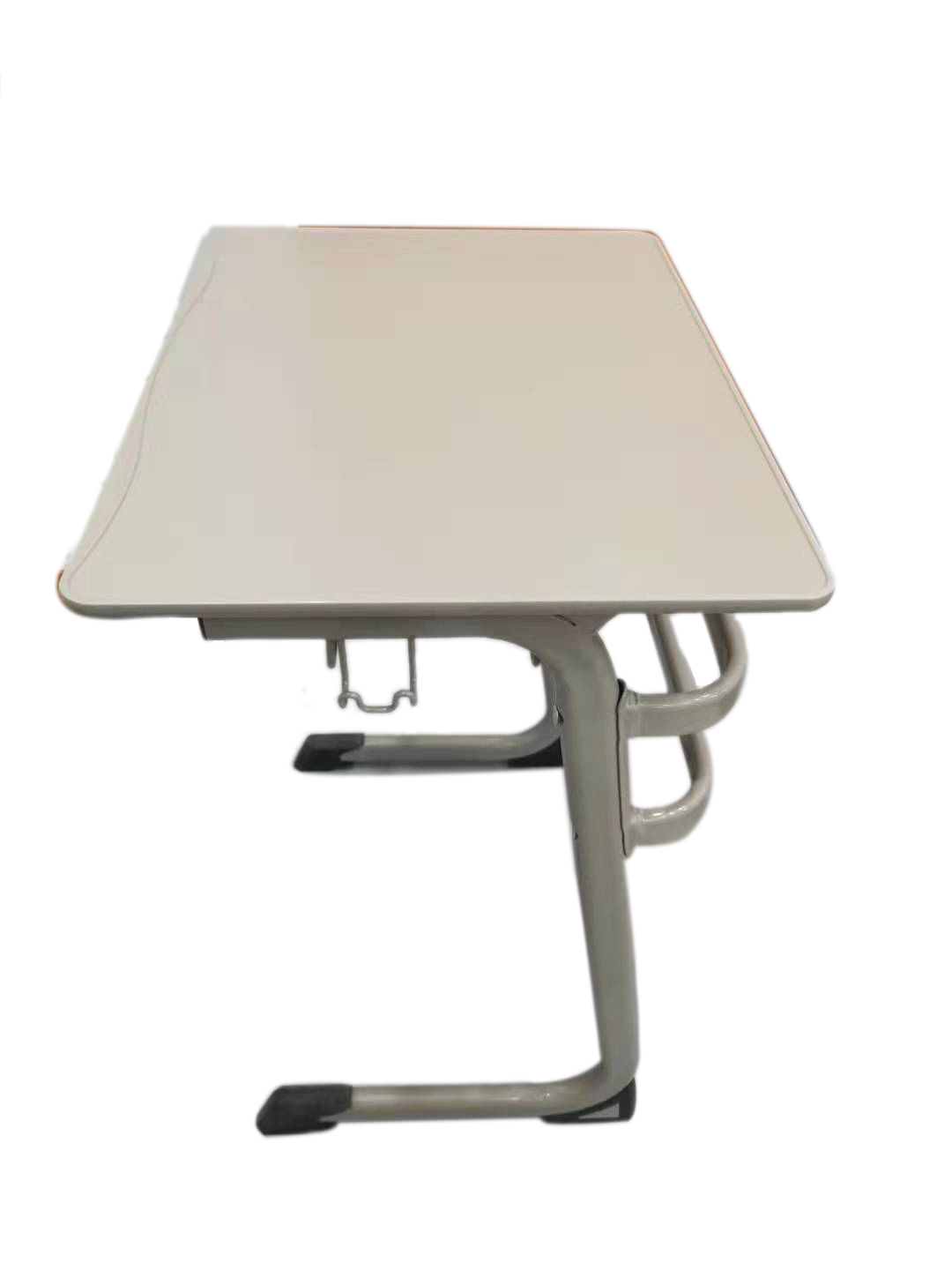 單人課桌:1、桌面尺寸:600x450x18mm,采用環(huán)保E1級三聚氰胺板,桌面四周30度斜角無接縫注塑包邊。